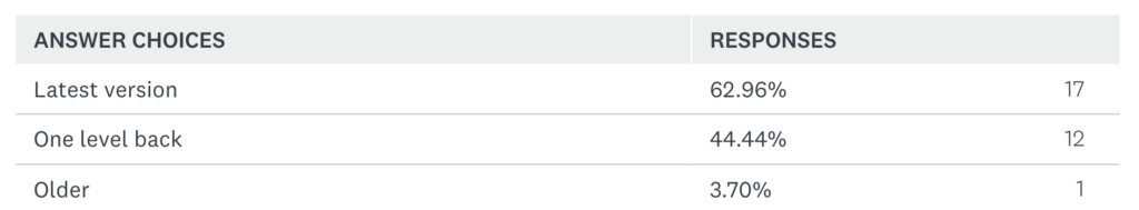 2) What version(s) of DBMS do you have in production (select all that apply)?