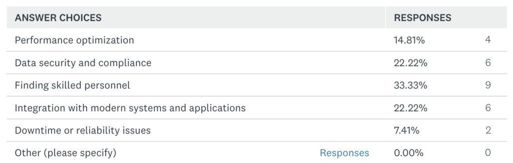 4) What is the biggest challenge you face in managing mainframe databases?