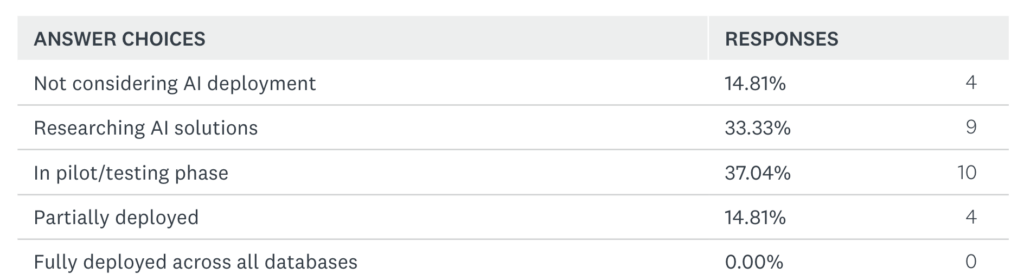 5) What is the status of AI deployment on your databases (for tasks such as performance optimization, anomaly detection, modernization, etc.)?