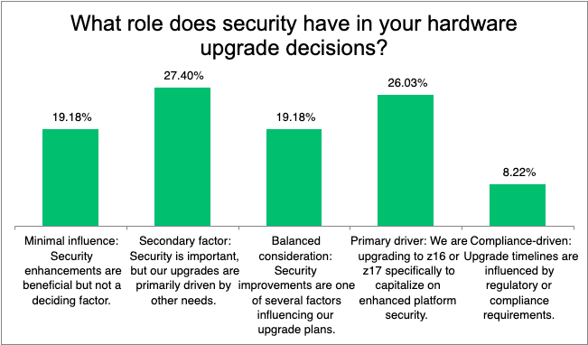 Security has considerable influence in most respondents’ upgrade decisions. Seventy-two percent said security was either the primary driver, a secondary factor or balanced with several other considerations in their upgrade plans.